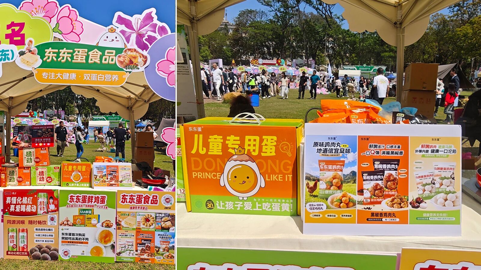 作为专注大健康领域、深耕双蛋白营养理念的食品品牌,东东蛋食品积极响应号召,携旗下360°全过程无抗、低胆固醇鲜鸡蛋系列,以及速冻食品系列中的东东蛋腐,信宜鸡肉丸,玉米烧黄金鱼蛋、墨鱼爆丸等明星产品亮相现场,与广大师生和市民展开面对面交流,传递“专注大健康,双蛋白营养”的品牌理念。