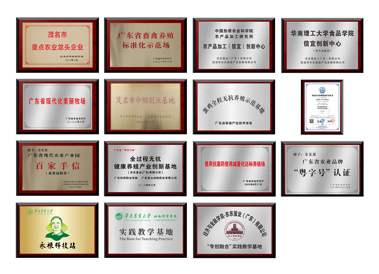2024年3月,荣获广东省家禽产业技术体系蛋鸡全程无抗养殖示范基地